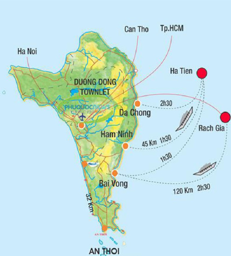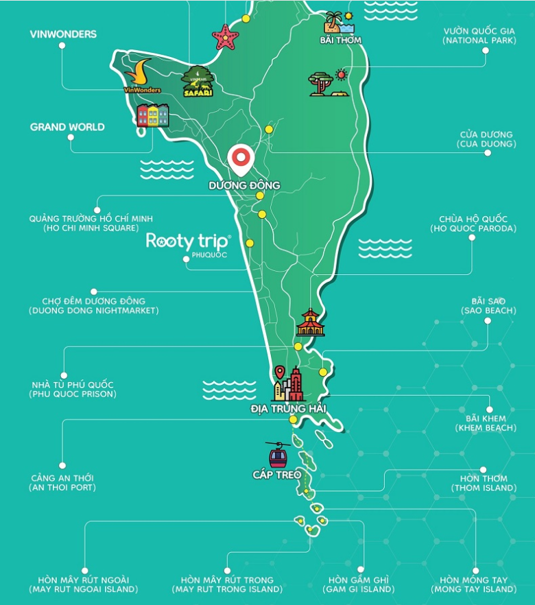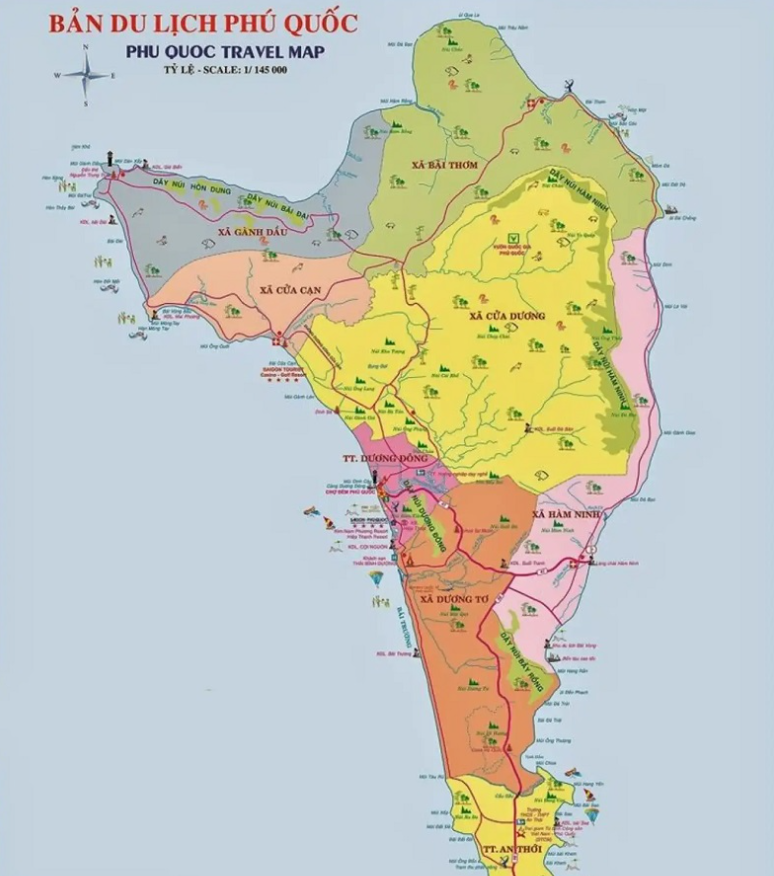 Dưới đây là thông tin bản đồ du lịch Phú Quốc chi tiết theo từng khu vực: